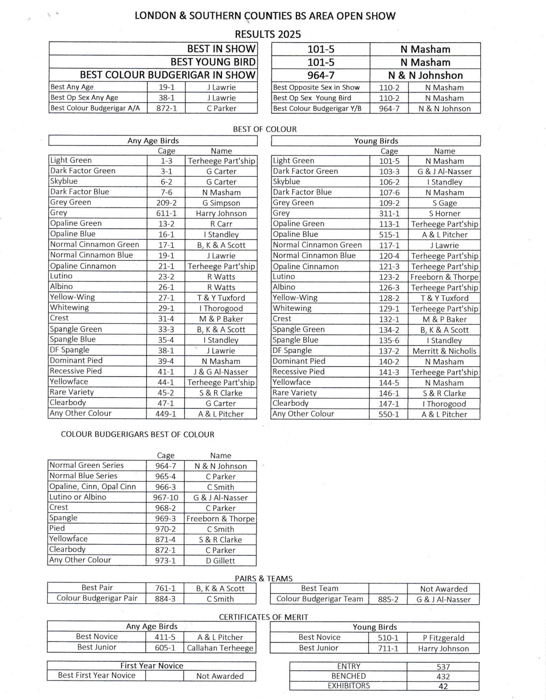 show from 44 exhibitors with 342 birds benched. The