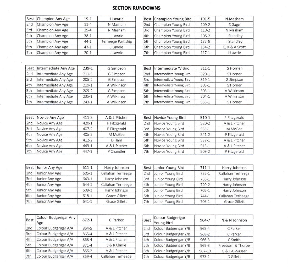 Ray Nicholls - Best Intermediate Young Bird |